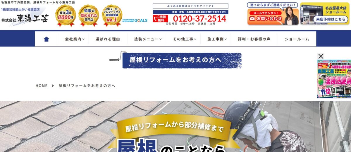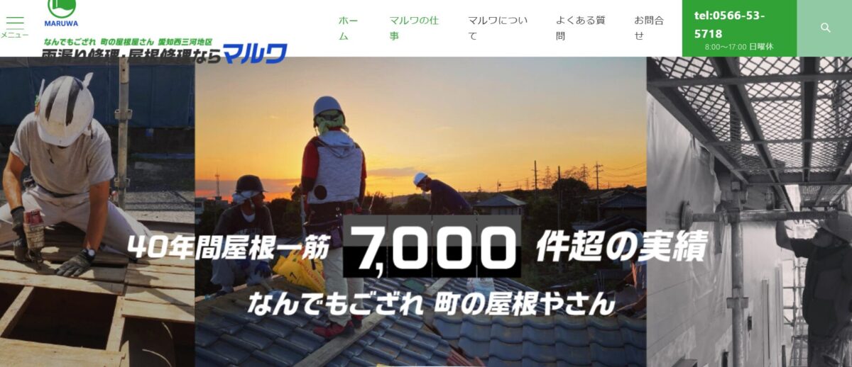 | サービス | 雨漏り修理の相談、修理工事(部分修理可)、屋根診断、火災保険による0円修理 |