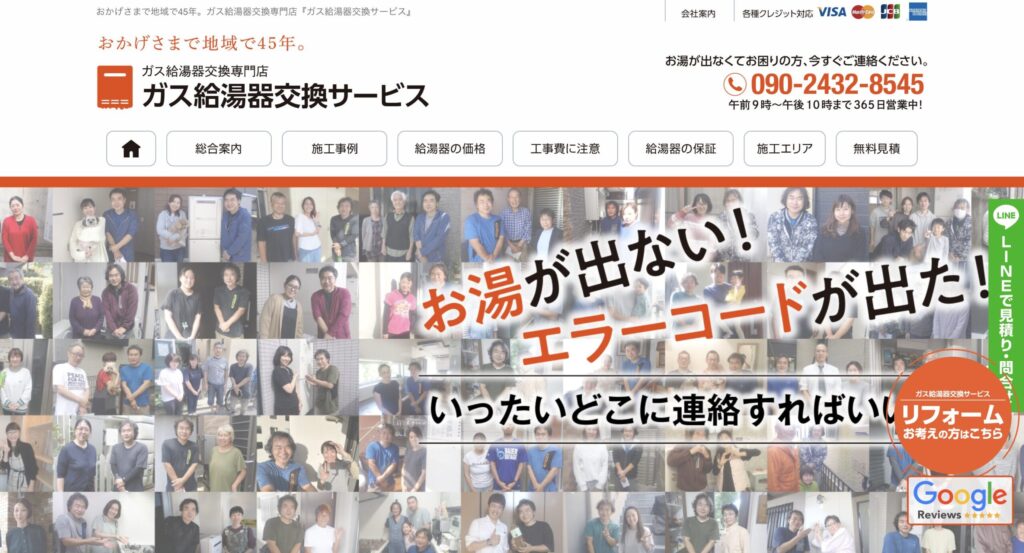 | サービス | 給湯器の点検、修理、交換、アフターサービス |