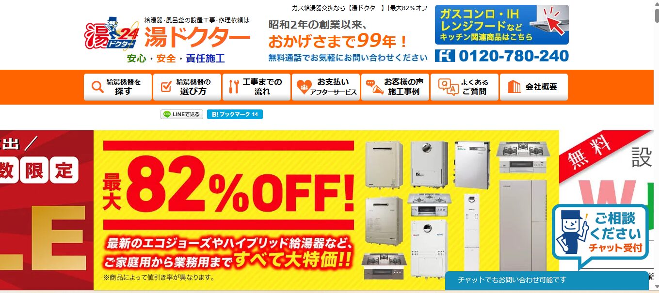 | サービス | 給湯器の点検、修理、交換、アフターサービス |