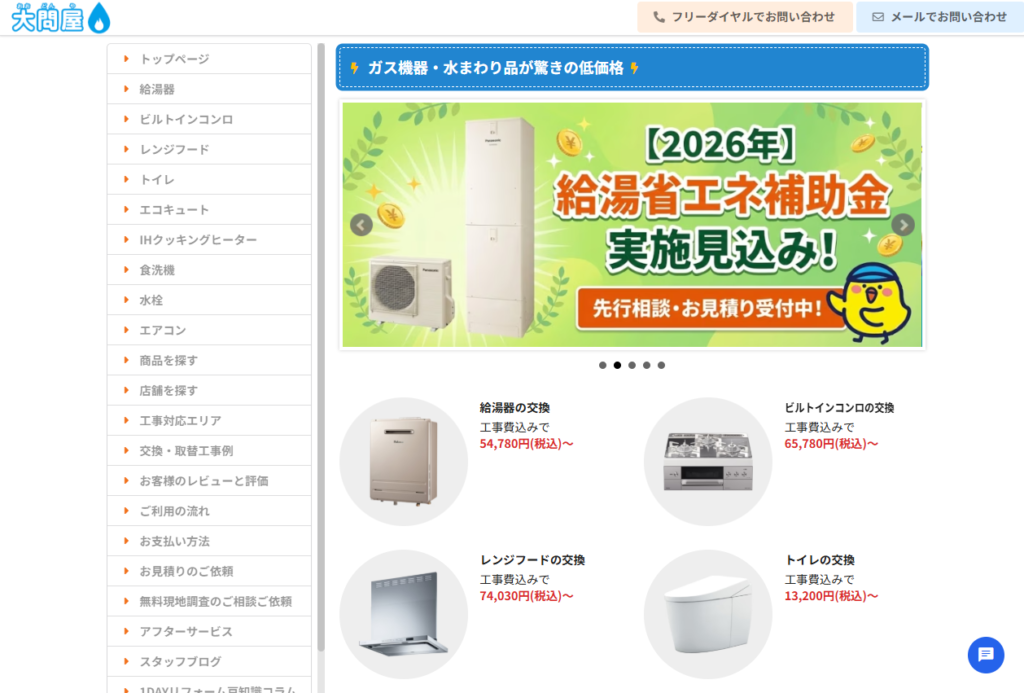 | サービス内容 | 給湯器の販売、交換、アフターサービス |