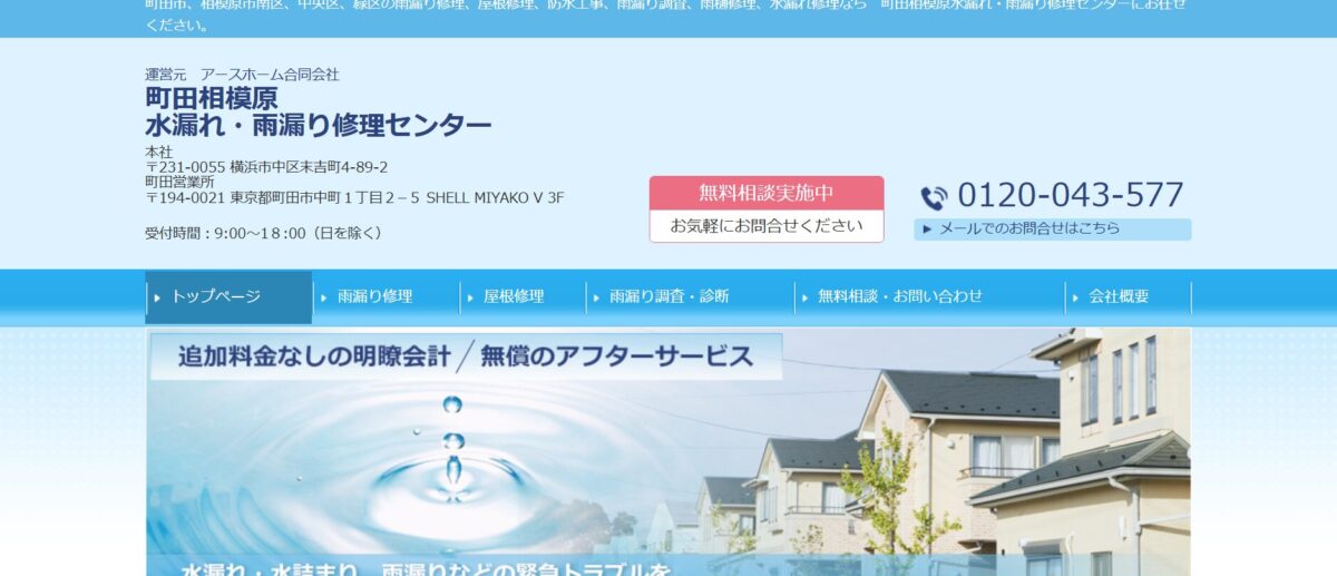 | サービス | 雨漏り修理の相談、修理工事(部分修理可)、屋根診断、火災保険による0円修理 |