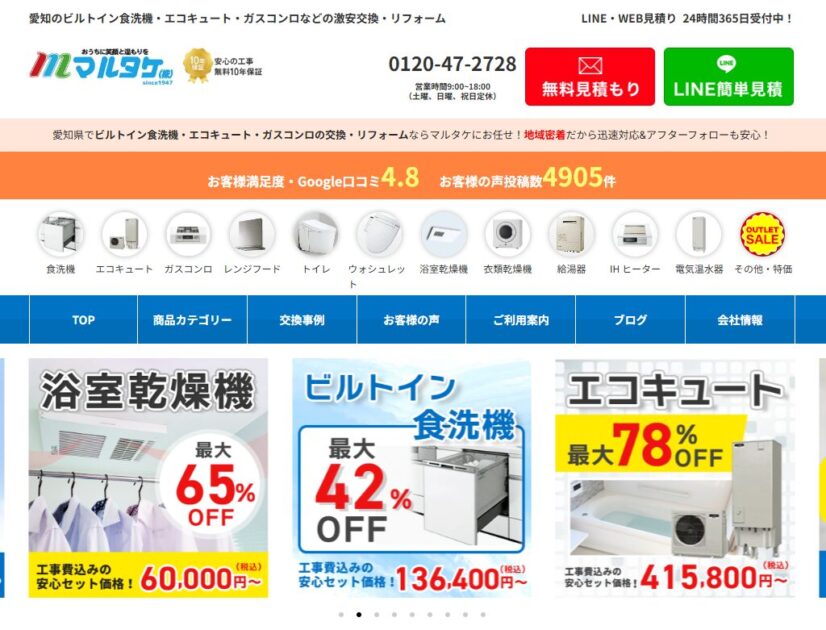 | サービス | 給湯器の見積もり、交換、アフターサービス |