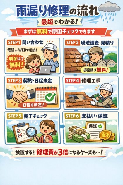 電話やWEBからの相談・見積もりは無料で対応しており、突然の雨漏りトラブルにも迅速に対応できるため、まずは雨漏り修理救急センターへ気軽に相談するのがおすすめです。