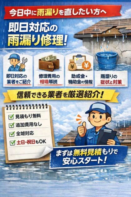 本記事では、即日対応・原因特定の正確さ・料金の分かりやすさを重視して、大府市で本当におすすめできる雨漏り修理業者12社を厳選しました。