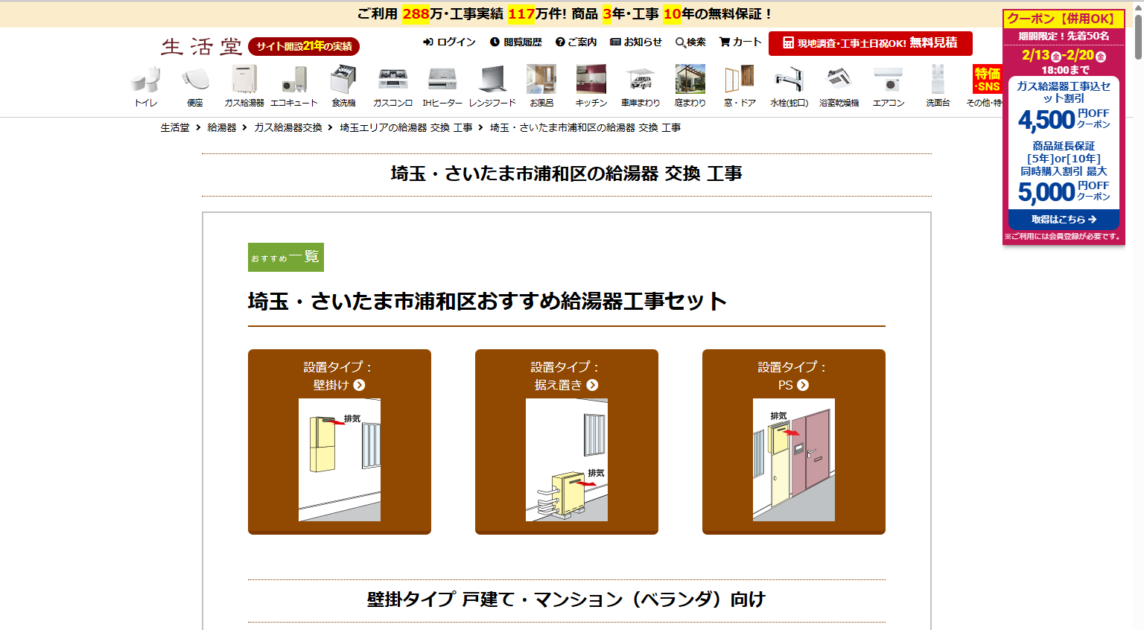 ③ さいたま市岩槻区のガス種・住宅タイプに対応しているか