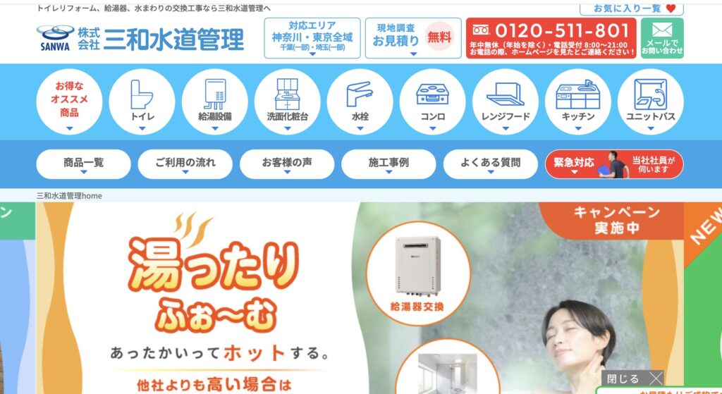 | サービス | 給湯器の見積もり、交換、アフターサービス |