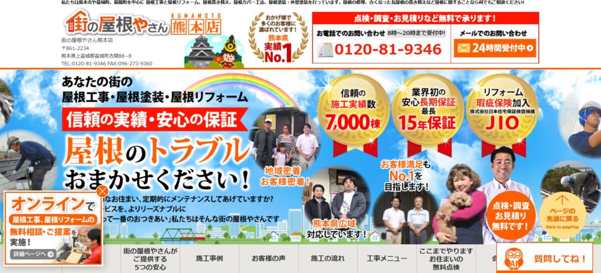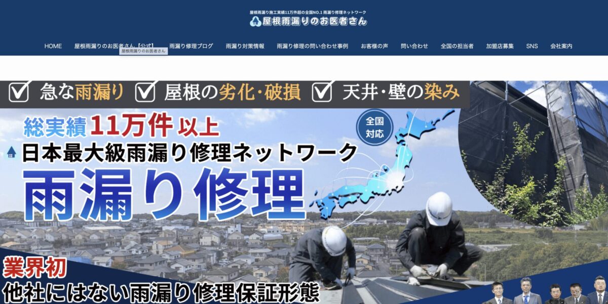 全国の提携施工業者ネットワークを活かし、地域の状況に合わせた最適な施工プランを提案してくれるため、初めて雨漏り修理を依頼する方でも安心して相談できます。