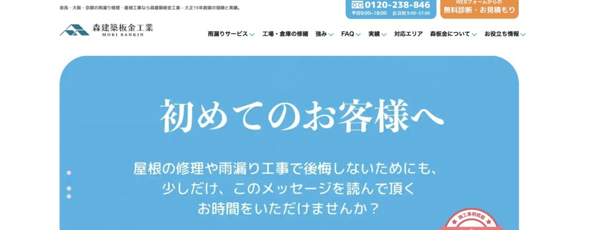 全国の提携施工業者ネットワークを活かし、地域の状況に合わせた最適な施工プランを提案してくれるため、初めて雨漏り修理を依頼する方でも安心して相談できます。