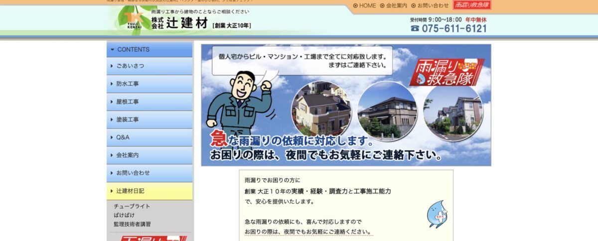 | サービス | 雨漏り修理の相談、修理工事(部分修理可)、屋根診断、火災保険による0円修理 |