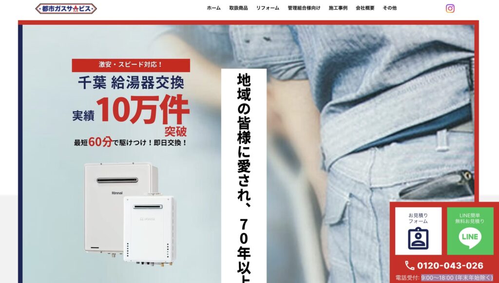 | サービス | 給湯器の点検、修理、交換、アフターサービス |